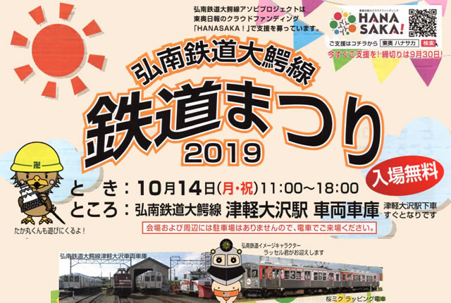 弘南鉄道は10月14日「鉄道の日」にあわせ、大鰐線の津軽大沢駅に隣接する車両基地でイベント「弘南鉄道大鰐線 鉄道まつり2019」を開催する。開催時間は11時から18時まで。