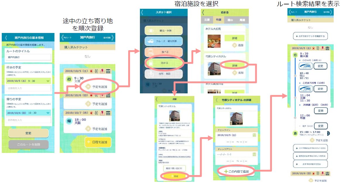 JR西日本はさまざまな交通機関の予約や決済をひとつのアプリで一体的に提供することで、瀬戸内エリアへの観光誘客拡大を目指す。実験期間は2020年3月31日までの予定。